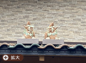 赤と緑の瓦を混ぜて、シーサーと色味を合わせました。