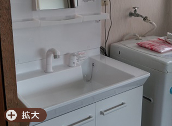 交換後、やっと使えるようになり、安心したご様子のS様。使い勝手がさほど変わらない上に省エネな新しい洗面化粧台に、とても感心されていました。